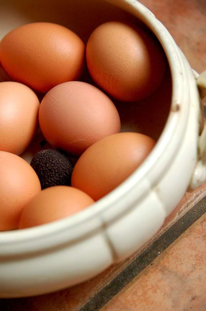 ほくほくな気持ちで持ち帰ったフレッシュなトリュフは、食べるまで卵(殻付き)といっしょに置いておくんです。